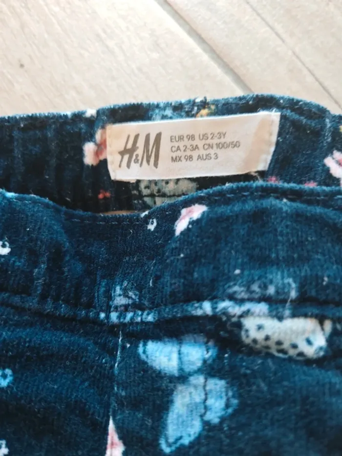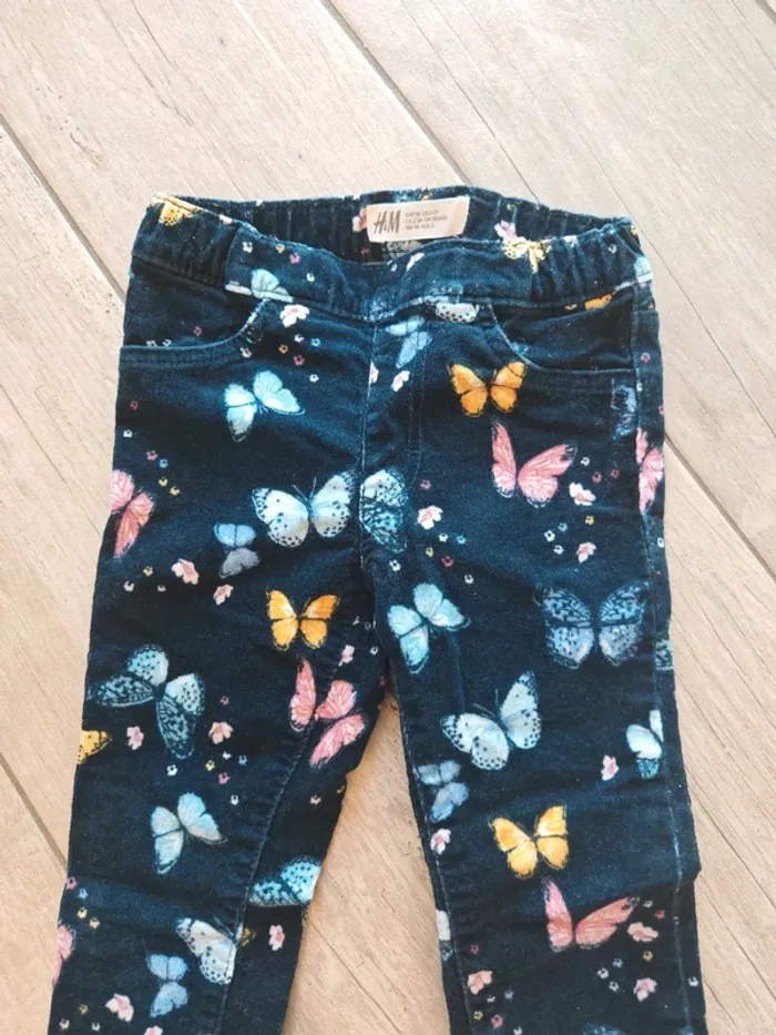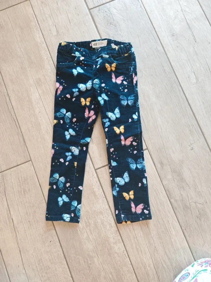 Pantalon bleu avec des motifs de papillons, effet velours . Cordon de serrage H&M taille 2/3 ans Très peu porté ↪️ N'hésitez pas à créer un lot pour obtenir une réduction 🤗