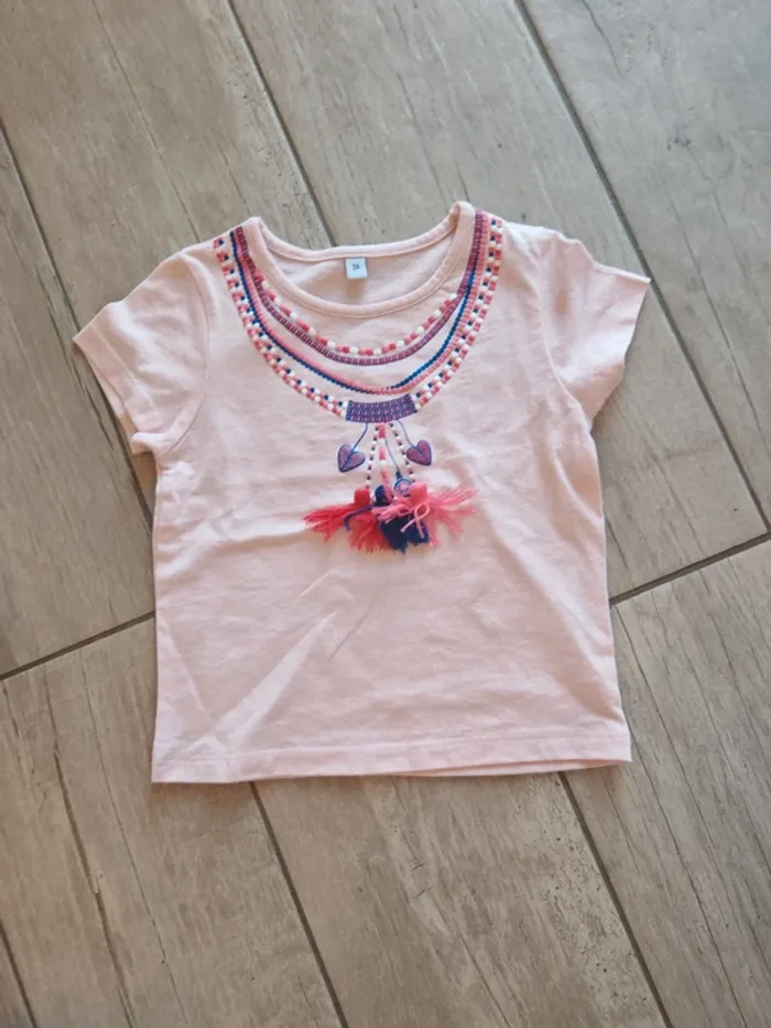 T-shirt rose à pom-pom 3 ans - photo numéro 1