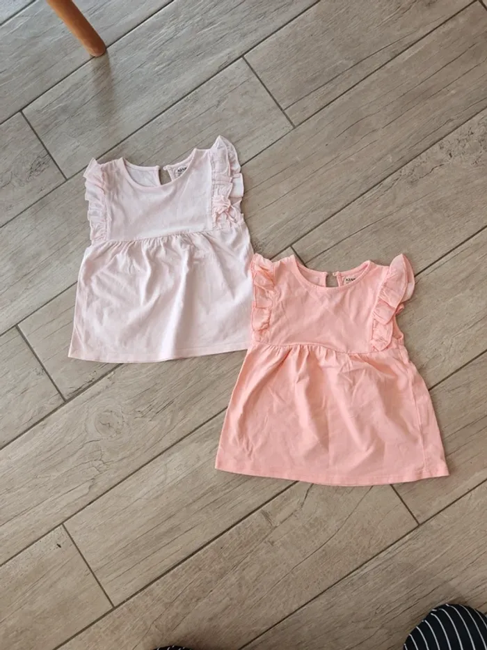 Lot de 2 débardeurs unis rose et abricot Taille 2 ans A noter : une petite tâche ↪️ N'hésitez pas à créer un lot pour obtenir une réduction 🤗