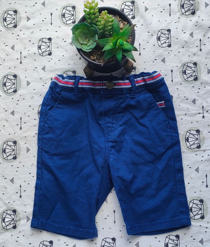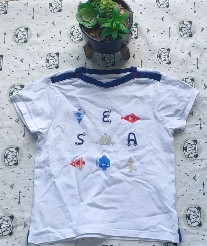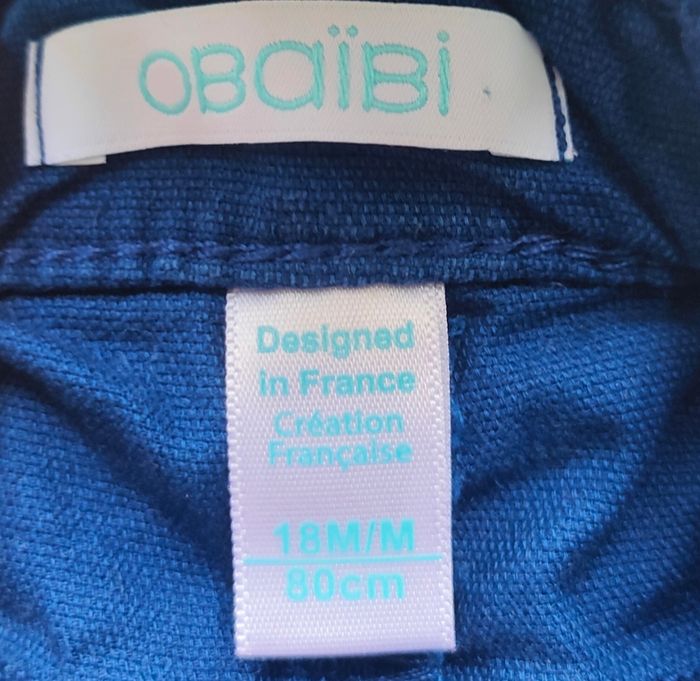 Tee-shirt blanc avec short bleu marine en très bon état de la marque Obaïbi pour garçon taille 18 mois