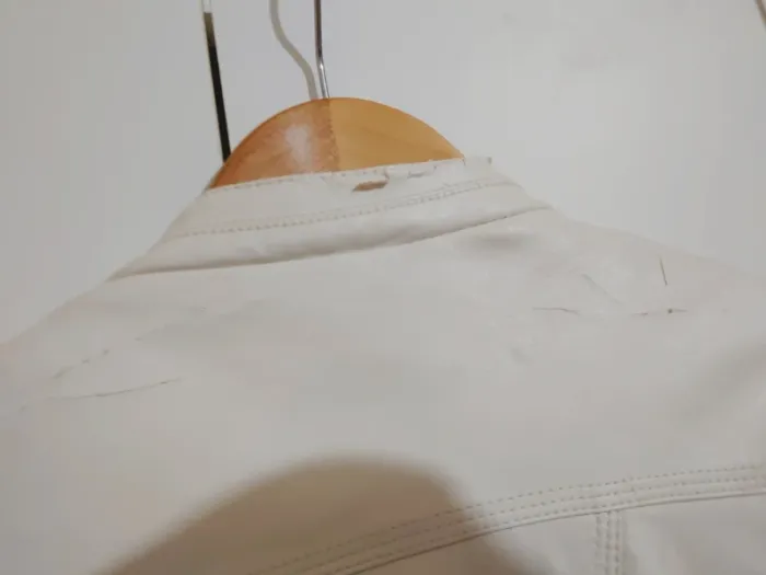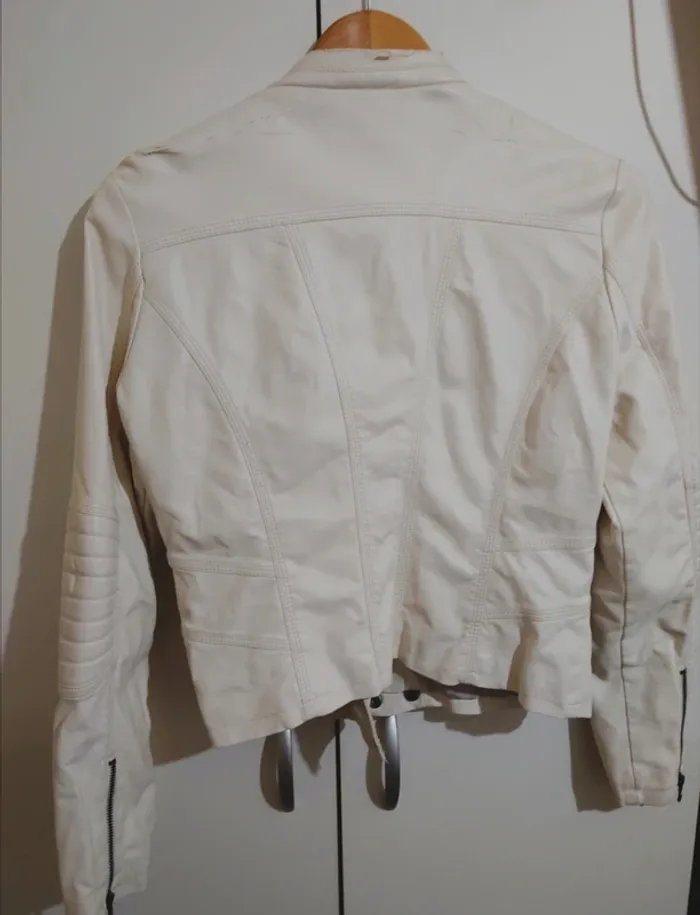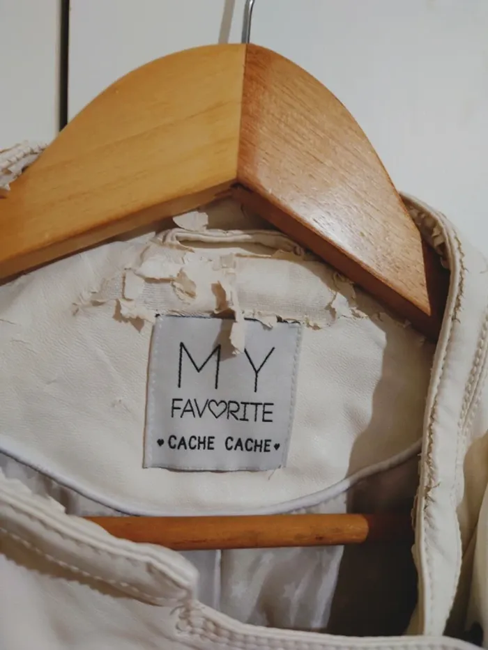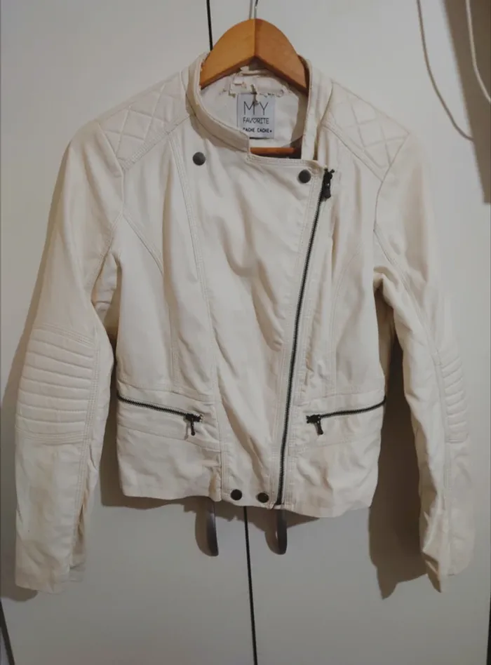 Veste blanc en simili cuire Taille 38 Marque Cache cache ⚠️ Voir photo cuir qui se défait au niveau du col #dressinggrac3vetementsfemmetaille38 #vestecuirfemme #vestesimilicuire38