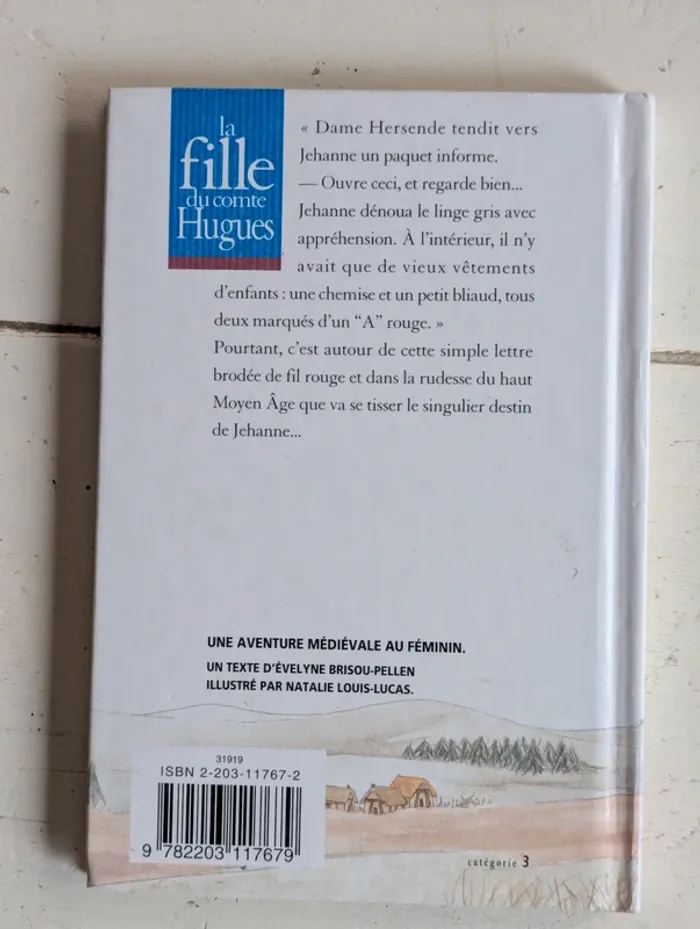 " Dame Hersende tendit vers Jehanne un paquet informe. - Ouvre ceci, et regarde bien... Jehanne dénoua le linge gris avec appréhension. A l'intérieur, il n'y avait que de vieux vêtements d'enfants : une chemise et un petit bliaud, tous deux marqués d'un " A rouge " Pourtant, c'est autour de cette simple lettre brodée de fil rouge et dans la rudesse du haut Moyen âge que va se tisser le singulier destin de Jehanne... Éditeur ‏ : ‎ Casterman Date de publication ‏ : ‎ 31 août 1995 Langue ‏ : ‎ Français Nombre de pages de l'édition imprimée ‏ : ‎ 73 pages ISBN-10 ‏ : ‎ 2203117672 ISBN-13 ‏ : ‎ 978-2203117679 Poids de l'article ‏ : ‎ 100 g Âge de lecture ‏ : ‎ 9 - 11 ans Dimensions ‏ : ‎ 12.1 x 1 x 17.8 cm