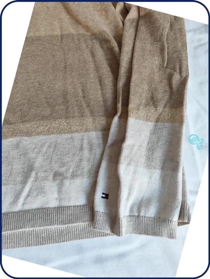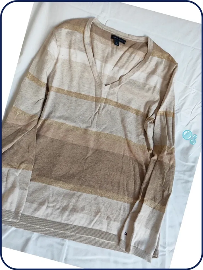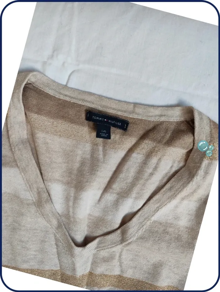 Pull pour femme Tommy Hilfiger Taille L Couleur beige, taupe avec du doré Pas de tâche ni de trou