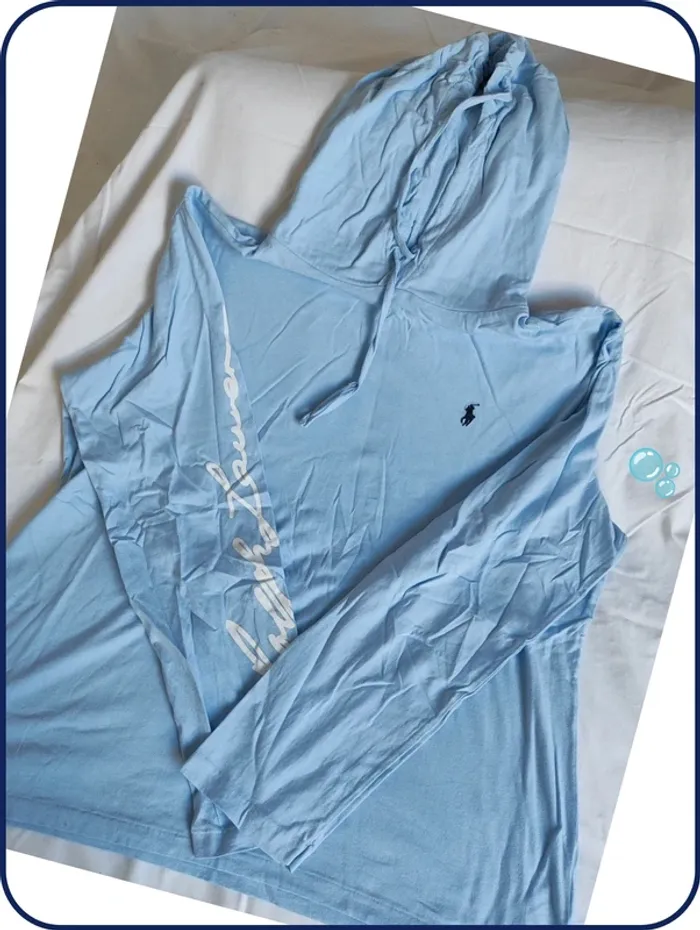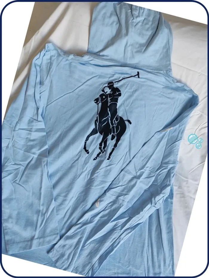 Haut léger avec capuche Ralph Lauren Taille xl En parfait état Flocage impeccable comme on peut le voir en photo Il a été assez peu porter de peur de le tâche justement. Mixte