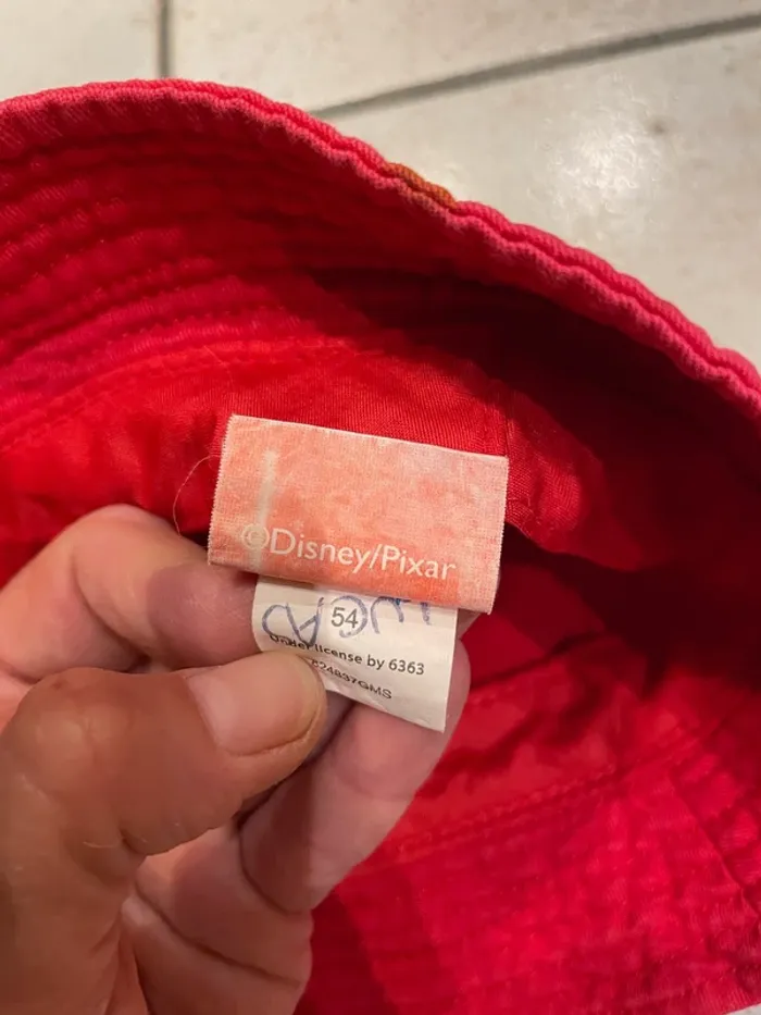 Chapeau enfant / Bob Cars, Flash Mc Queen Taille 54cm (d'après le guide de tailles c'est 5-8ans mais je trouve que ça taille petit, je le met plutôt en 3-5ans) Couleur rouge légèrement éclaircie, petite trace à l'arrière, voir la dernière photo. Pour voir tous mes articles Cars: (pensez à décocher vos filtres de tailles afin de tout voir) #coraliefromgrenoble_cars Pour voir tous mes jouets et articles de puériculture: #coraliefromgrenoble_jouetsetautres