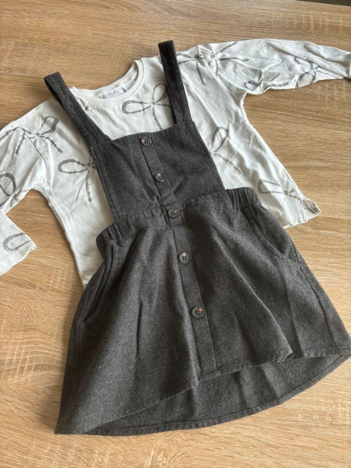 L’ensemble de deux pièces comprend: -1 t shirt zara 3/4 ans Motif noeuds paillettes -1 jupe à bretelles kiabi 4 ans Le tout en exellent état N’hésitez pas à faire un lot dans mon dressing, pour plusieurs articles je fais des prix #ladsdior_36mois #ladsdior_4ans