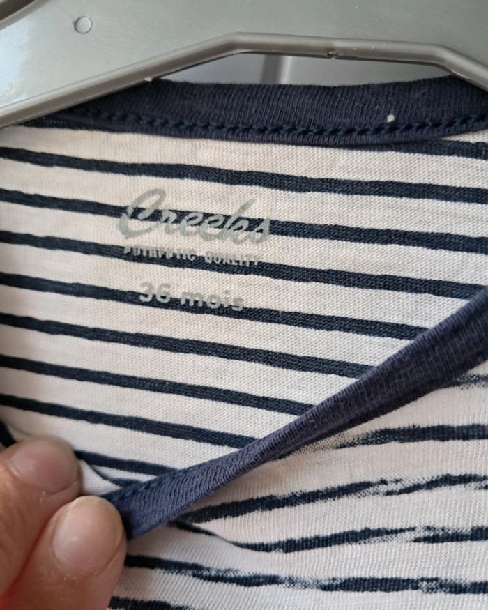 Tee-shirt blanc rayé Taille 3ans Marque Creeks #dressinggrac3vetements3ans #teeshirt3ans #creeks3ans