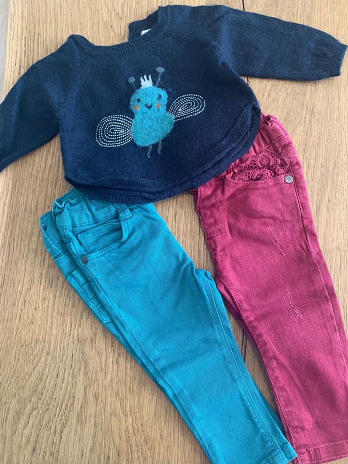Ensemble bébé comprenant -1 pull avec cachemire boutchou -1 jean mexx 3-6 mois -1 jean mexx 6-9 mois Exellent état N’hésitez pas à faire un lot dans mon dressing, pour plusieurs articles je fais des prix