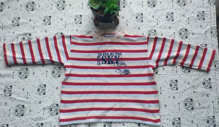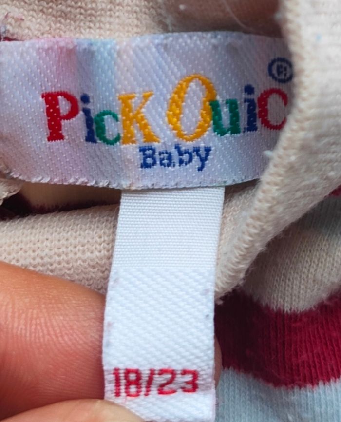 Tee-shirt ML beige/rouge et pantalon beige en bon état de la marque Pick Ouic pour garçon taille 18/23 mois