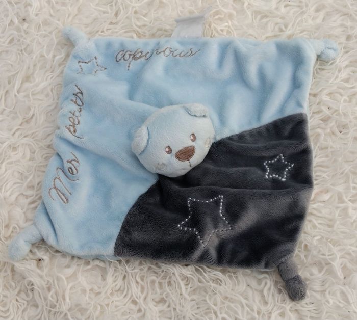 Doudou ours carré plat gris et bleu - mes petits copinous- Kimbaloo - photo numéro 1