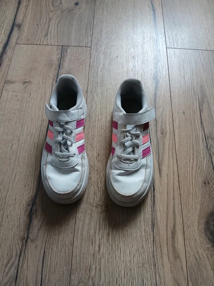 Basket Adidas blanches et roses 34  à scratch - photo numéro 1