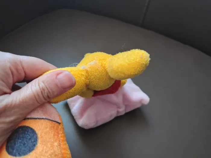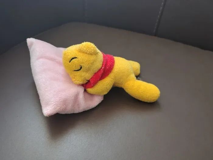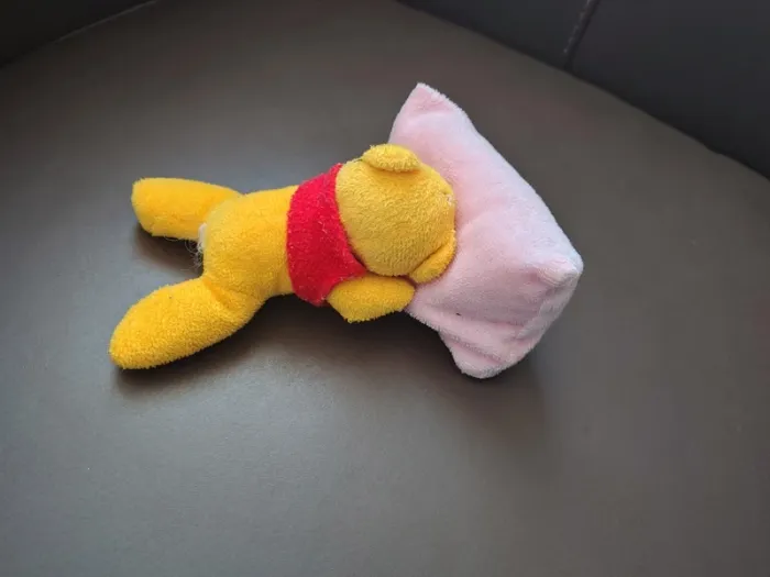 Mini peluche ourson qui dort type Winnie sur oreiller rose - photo numéro 3