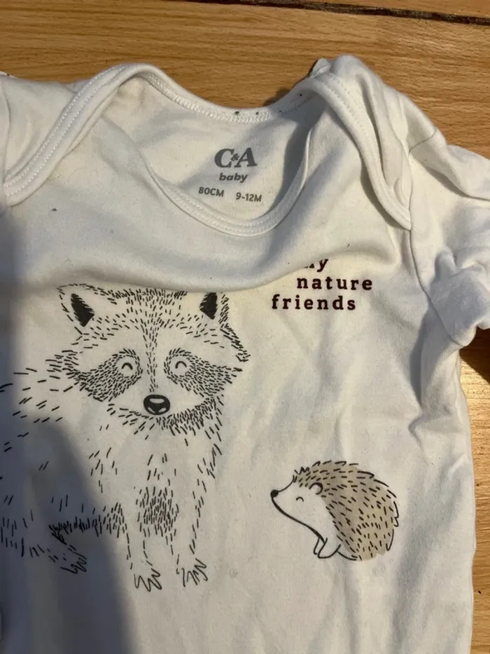 Bodies multimarque 18mois - a motif : tex. Porté plusieurs fois mais en bon état - dessins animaux : C&a. Indique 12mois mais bien 80cm-18mois! Porte à 2-3 reprises