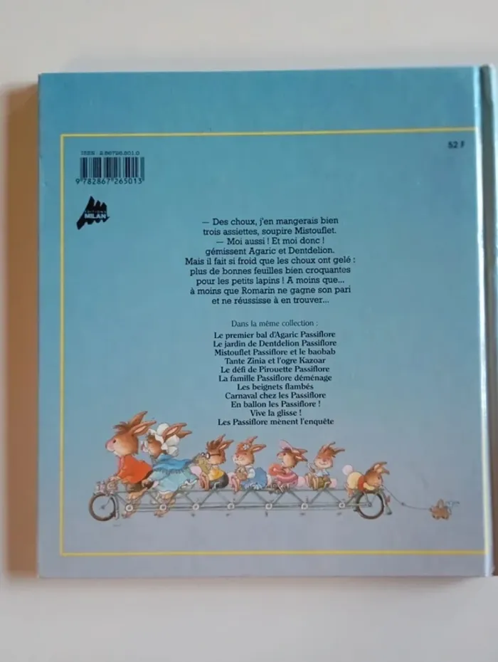 - Des choux, j'en mangerais bien trois assiettes, soupire Mistouflet. - Moi aussi ! Et moi donc ! gémissent Agaric et Dentdelion. Mais il fait si froid que les choux ont gelé : plus de bonnes feuilles bien croquantes pour les petits lapins ! A moins que... à moins que Romarin ne gagne son pari et ne réussisse à en trouver... Éditeur ‏ : ‎ Milan Date de publication ‏ : ‎ 1999 28 pages Âge de lecture ‏ : ‎ 3 - 6 ans Dimensions ‏ : ‎ 22.5 x 1 x 24.8 cm Livre en très bon état Je vends d'autres livres de Passiflore #phil_peg_passiflore #passiflore #lapin