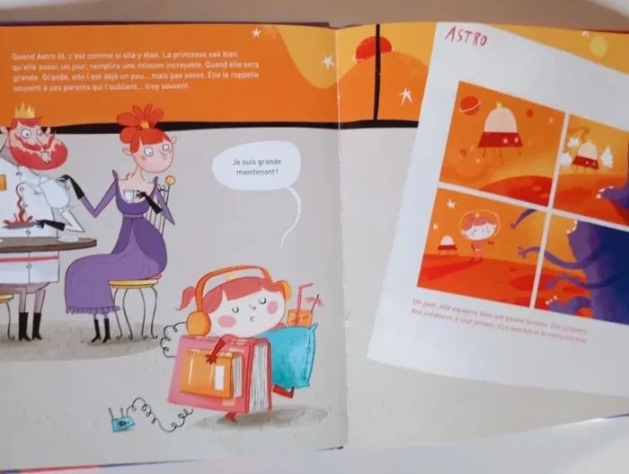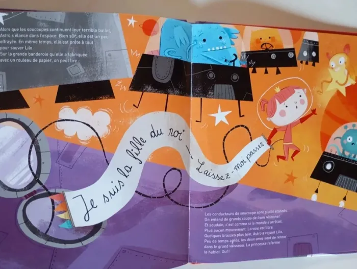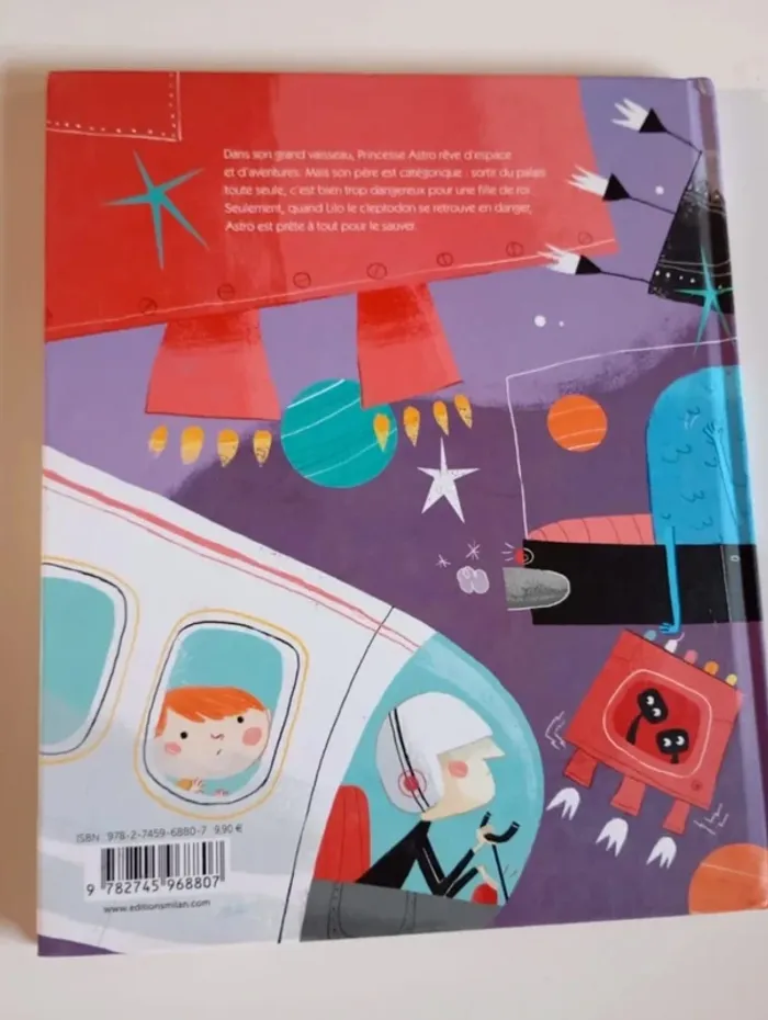 Dans son grand vaisseau, Princesse Astro rêve d'espace et d'aventures. Mais son père est catégorique : sortir du palais toute seule, c'est bien trop dangereux pour une fille de roi. Seulement, quand Lilo le cleptodon se retrouve en danger, Astro est prête à tout pour le sauver. Éditeur ‏ : ‎ Milan Jeunesse 32 pages Âge de lecture ‏ : ‎ 4 - 7 ans Dimensions ‏ : ‎ 21 x 1 x 25.5 cm Livre en très bon état Je vends d'autres livres sur l'espace #phil_peg_espace #espace