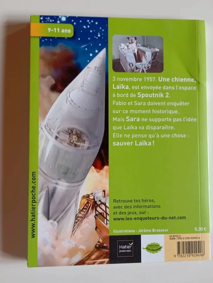 3 novembre 1957. Une chienne, Laïka,est envoyée dans l'espace à bord de la fusée Spoutnik 2.Fabio et Sara doivent enquêter sur ce moment historique.Mais Sara ne supporte pas l'idée que Laïka va disparaître.Elle ne pense qu'à une chose : sauver Laïka ! Éditeur ‏ : ‎ Hatier 92 pages Âge de lecture ‏ : ‎ 8 - 11 ans Dimensions ‏ : ‎ 13 x 0.4 x 18 cm Livre en très bon état Je vends d'autres livres sur l'espace #phil_peg_espace #laïka #espace #spoutnik