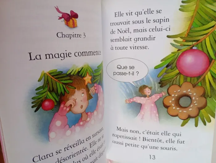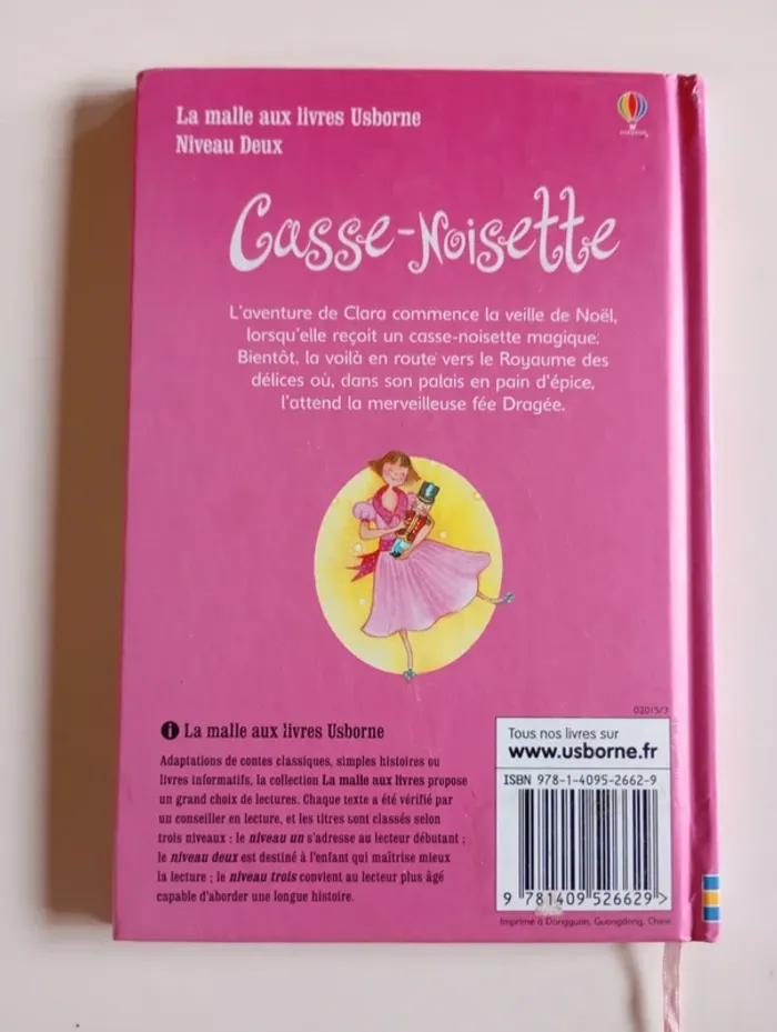 L'aventure de Clara commence la veille de Noël avec un magnifique présent : une poupée magique. Bientôt, la fillette se retrouve sur un traîneau volant, en route vers le pays des sucreries... Éditeur ‏ : ‎ Usborne 48 pages Âge de lecture ‏ : ‎ 4 - 7 ans Dimensions ‏ : ‎ 13.8 x 0.9 x 20.5 cm Livre en très bon état #phil_peg_noel #phil_peg_hiver #cassenoisette