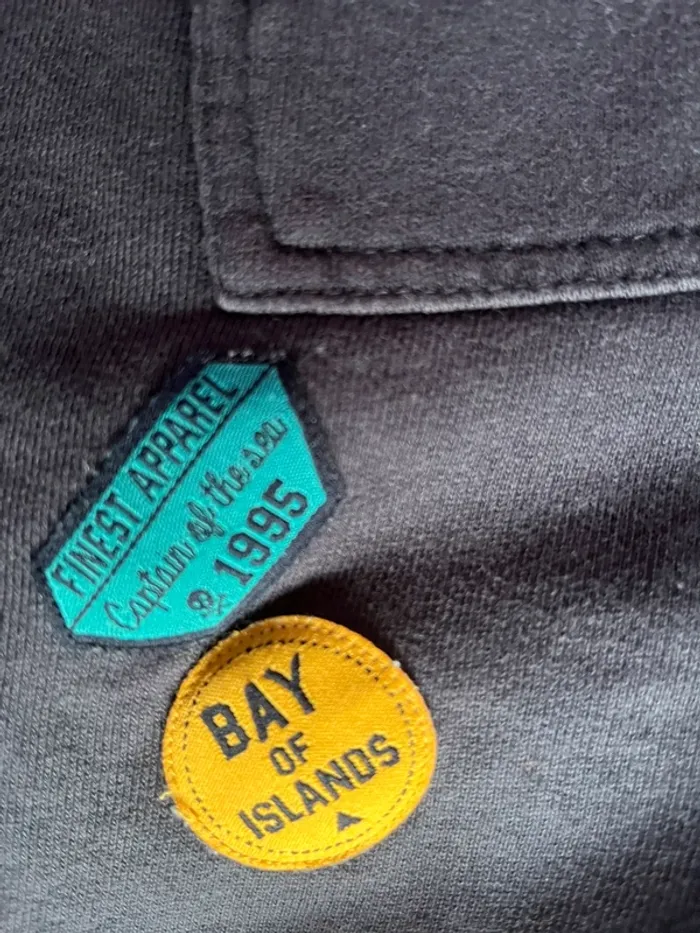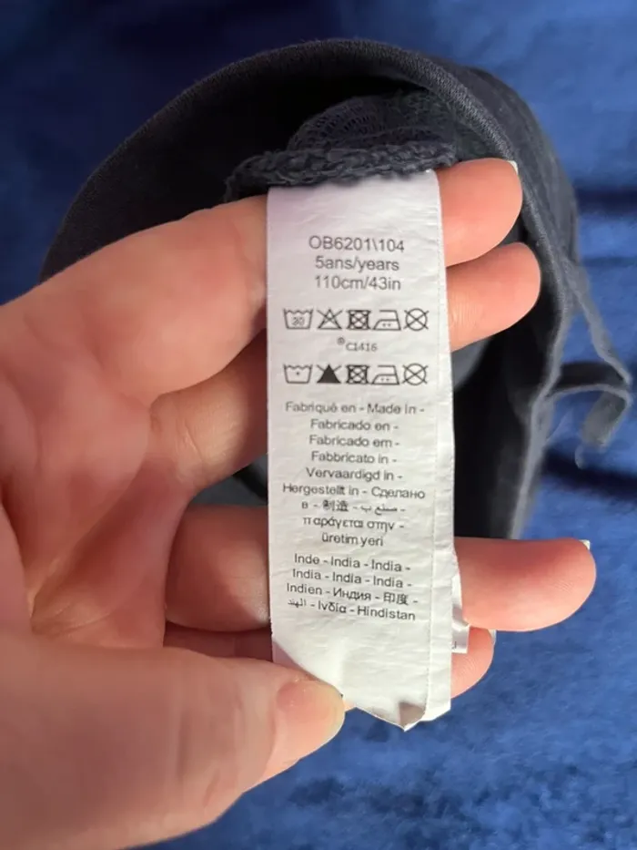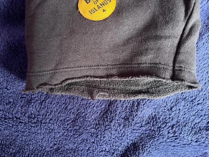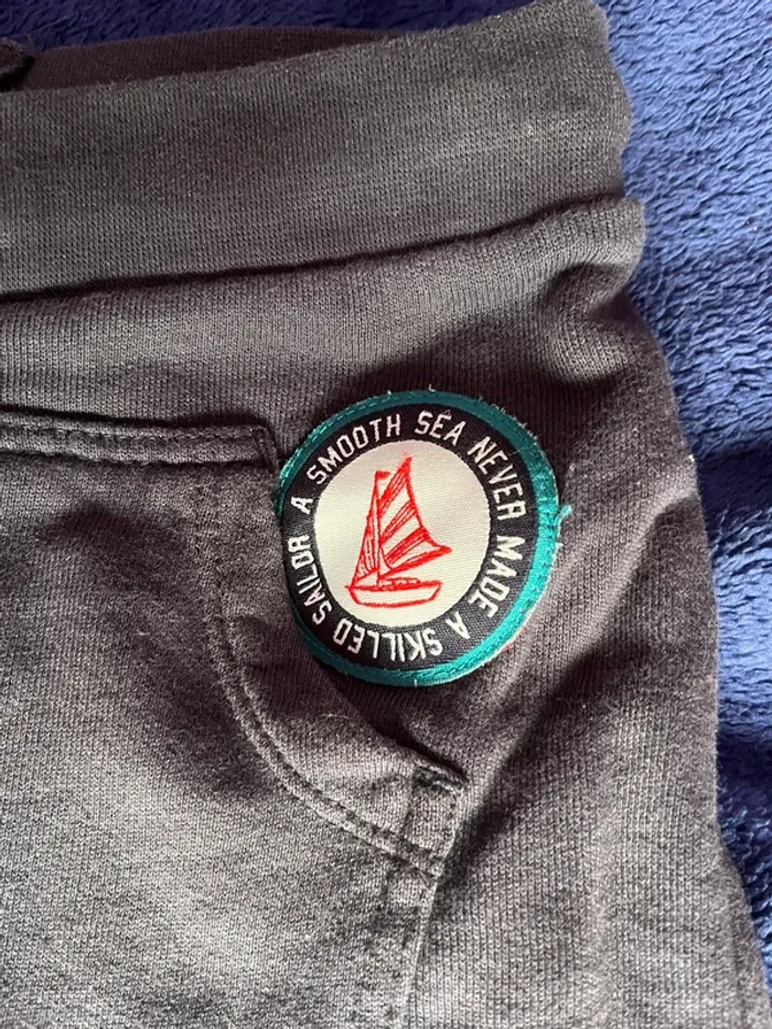 #crocsycinqans Short couleur marine 5 ans- 110 cm 3 patch d’origine type pastilles sur le thème de la marine Poche devant type kangourou 1 poche en arrière Avec liens pour resserrer la taille Bas de short - ourlet effiloché , style d’origine