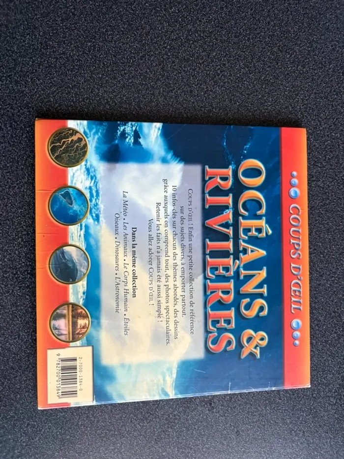 #crocsylivresfrancais Je vends ce livre "Océans et rivières", Collection coup d’œil de référence sur des sujets divers 10 infos clés sur chacun des thèmes abordés, voir photo Avec dessins et photos Bon état car couvertures légèrement pliées Couvertures semi rigides