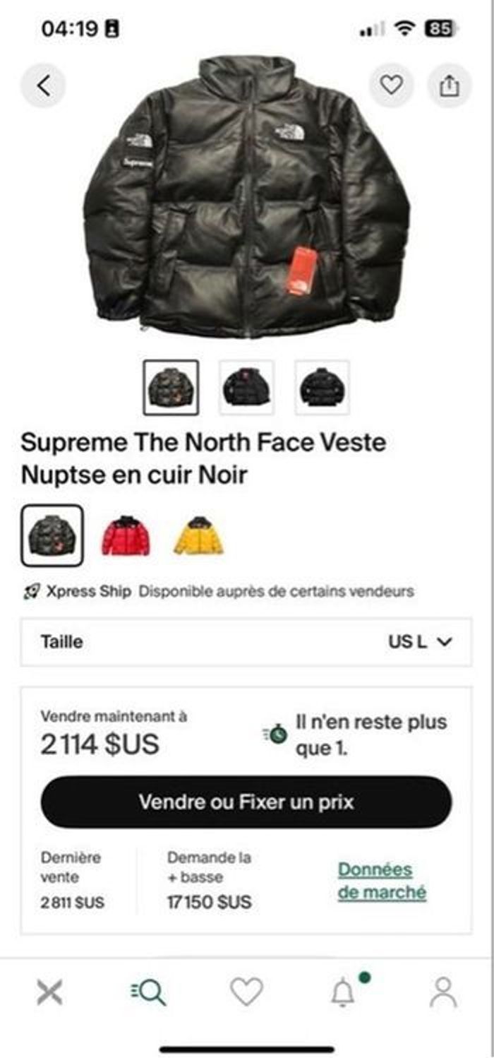 Blouson North Face&supreme officiel cuir souple édition limitée très  rare