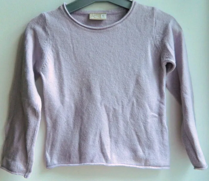 Pull T 4 ans Tout doux Fin mais bien chaud En acrylique,angora,laine ,viscose et nylon Couleur parme Très bon état Envoie sous 48 h