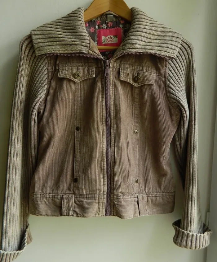 Blouson T 10 ans Beige rosé Marque "NKY" En velours et manches côtelé En coton et polyester Zippée Envoie sous 48 h