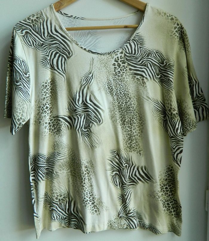 T shirt T 4 Manches courtes Imprimé sauvage En viscose et élasthanne Très agréable à porter Très bon état Envoie sous 48 h