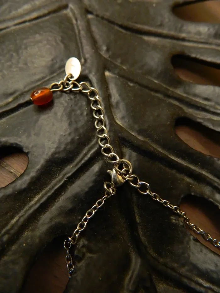 Collier fantaisie Avec pierre de verre Marron et argenté Réglable Très bon état Envoie sous 48 h
