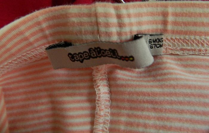 Leggings T 6 mois Marque" Tape à l'oeil" En coton et élasthanne Rose et blanc rayé Très bon état Envoie sous 48 h