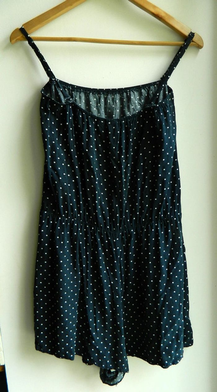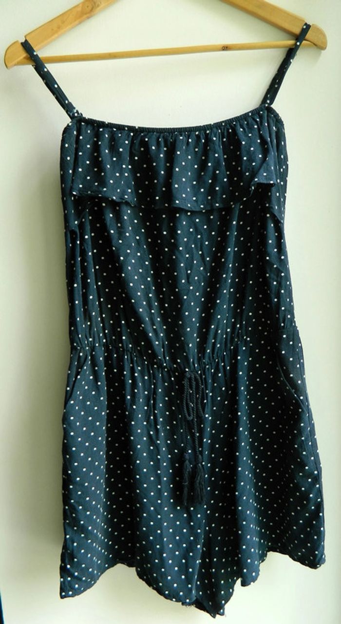 Combishort T 40 Marque" Kiabi" Fond bleu marine à pois blanc Bretelles amovibles En viscose 2 poches Très bon état Envoie rapide et soigné sous 48 h