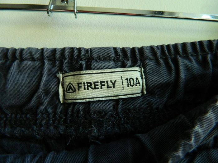 Pantalon T 10 ans Marque "Firefly" Bleu foncé effet délavé En coton Taille resserable Chevilles élastiqué Multipoches Defauts sur les cordons de serrage,le reste est en très bon état Envoie sous 48h
