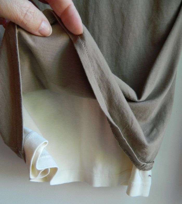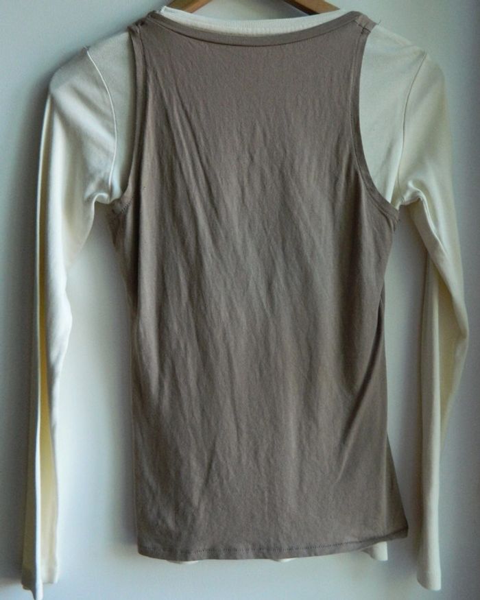 T shirt femme T 2 Marque "Cache Cache" Manches longues et par dessus un débardeur En coton Beige et écru Très bon état Envoie sous 48 H