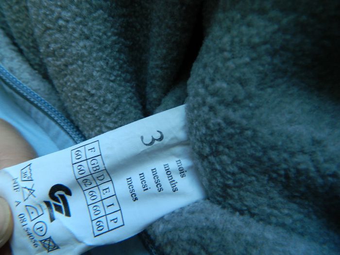 Combinaison bébé garçon T 3 mois Marque "Grain de blé" En polyester et polyamide Bleu ciel intérieur gris en polaire Bien chaud Marque" Grain de blé" Très bon état Envoie sous 48 h