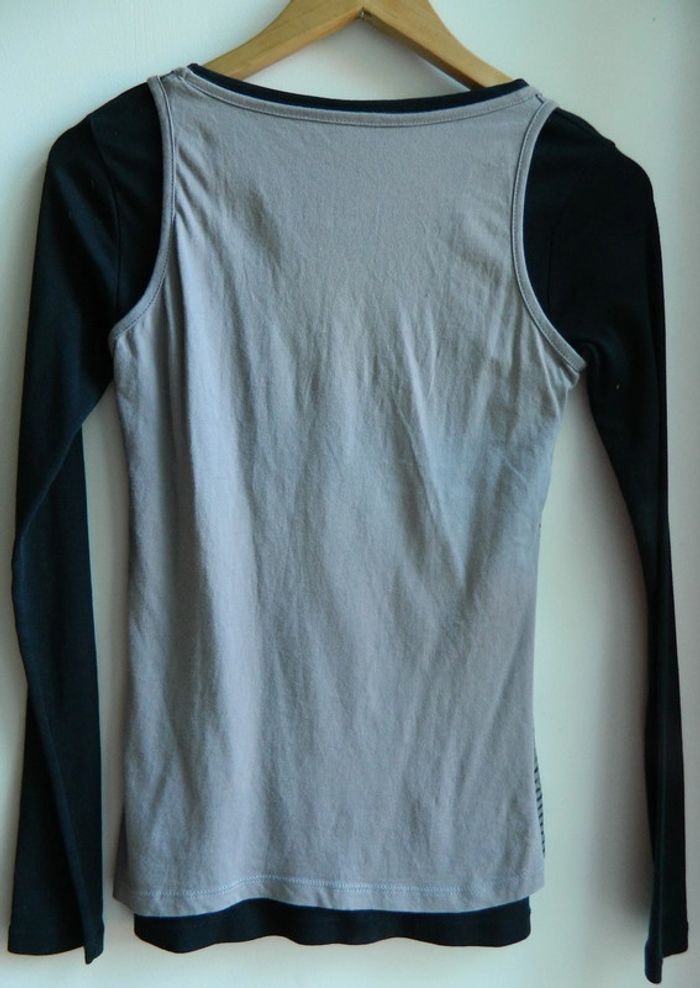 T shirt femme T 1 Marque "Cache Cache" Manches longues et par dessus un débardeur En coton Noir et gris Très bon état Envoie sous 48 h