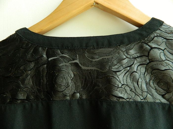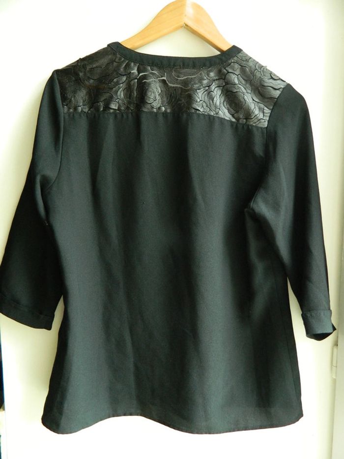 Blouse T 40 Marque "Damart" En polyester et polyamide Noir uni Empiècement au niveau du haut en simili cuir Manches 3/4 Très bon état Envoie sous 48 h