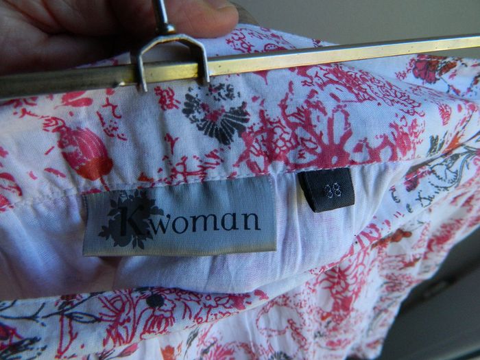 Jupe T 38 Marque" Kiabi" Imprimé rose et marron sur fond blanc Zippée sur le côté En coton Très bon état Envoie sous 48 h