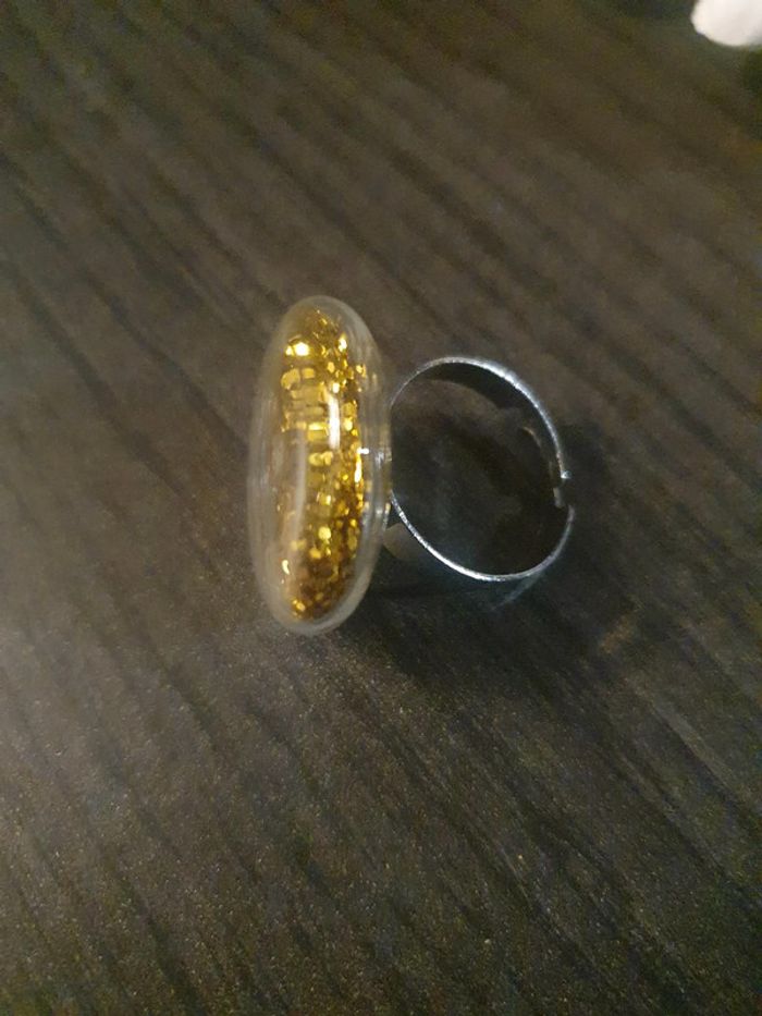 Bague réglable en verre soufflé A l'intérieur des paillettes doré Très bon état car jamais portée Envoie rapide et soigné