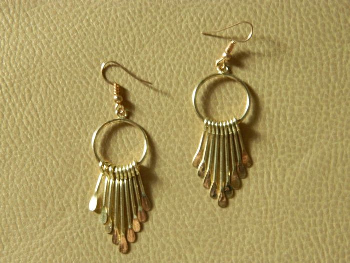 Boucles d'oreilles fantaisies neuves Métal doré 7 cm de long sur 2 cm de diamètre pour le cercle Envoie rapide et soigné