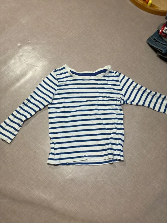 Jolie marinière à manches longues pour enfant, de la marque La Redoute Kids. 👕 Taille : 3 ans (92 cm) 🌿 Matière : 100 % coton – douce et agréable à porter ⚪⚫ Motif : rayures bleues et blanches intemporelles 👍 Bon état général Idéale pour un look marin classique et confortable au quotidien ! #mariniere #laredoutekids #vetementenfant #3ans #92cm #tshirtmancheslongues #rayures #coton #modeenfant #vintedkids