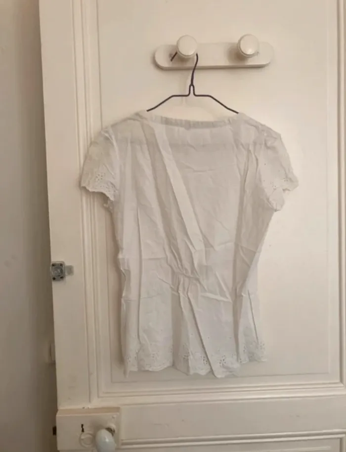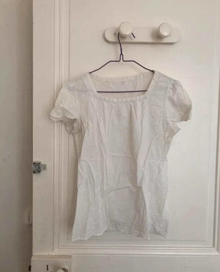 Blouse t-shirt blanc broderie anglaise coton (Taille S) - photo numéro 1