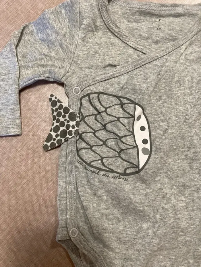 Body gris manches longues bébé - motif poisson - 3 mois (59 cm) - photo numéro 4