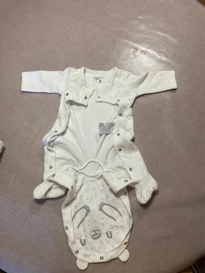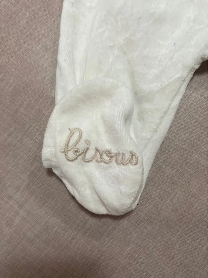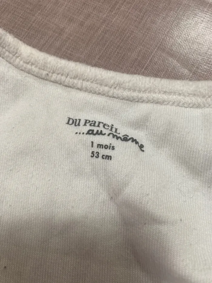 Adorable pyjama mixte en velours tout doux, coloris blanc avec motif ourson brodé souriant sur le devant et inscription “bisous” brodée sur les pieds. Ouverture pratique par pressions sur le devant et à l’entrejambe. 📌 Détails : • Marque : Du Pareil au Même (DPAM) • Taille : 1 mois (53 cm) • Matière : 78% coton, 22% polyester (intérieur doux et confortable) • Coloris : blanc avec broderies marron/beige/rose • Fermeture à pressions (devant + jambes) • État : très bon état 💡 Idéal pour la maternité ou les premiers jours de bébé #pyjamabebe #dpam #dupareilaumeme #1mois #veloursbebe #vetementbebe #maternite #ourson #mixte