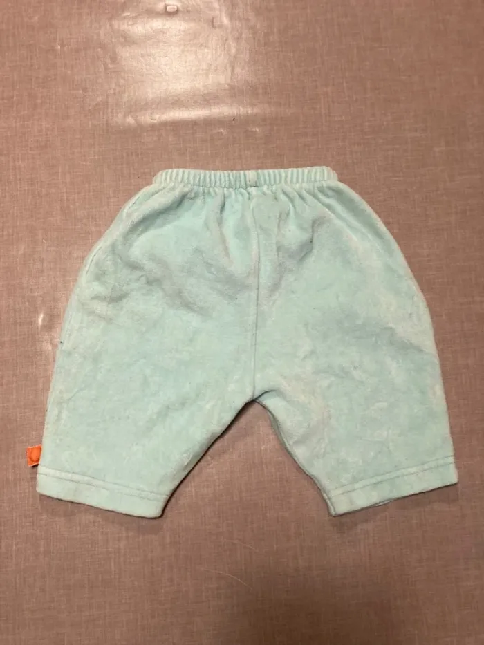 Pantalon bébé mixte vert d’eau en velours éponge – 1 mois – coton & polyester - photo numéro 1