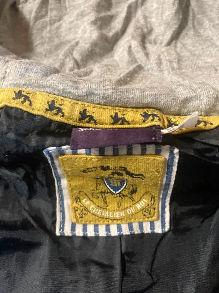 Jolie veste mi-saison pour petit aventurier ! • Taille : 2 ans / 86 cm • Marque : Sergent Major • Coloris : bleu marine • Capuche en jersey gris intégrée • Doublée, chaude et confortable • Fermeture zippée + boutons • Détail écusson brodé “Le Chevalier du Roi” • Quelques traces d’usage mais en bon état général Parfaite pour l’école ou les balades de mi-saison ! #sergentmajor #veste #garçon #2ans #automne #printemps #lookpetitgarçon #kidsfashion #vestegarçon #capuche
