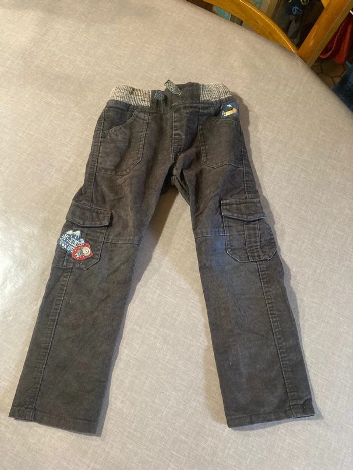 Pantalon en velours côtelé marron, doublé, très confortable et chaud. • Taille élastiquée avec bord-côte côtelé pour un bon maintien • Détails brodés et patchs ludiques sur les poches • Multiples poches, look aventurier • Très bon état général Taille : 2 ans / 92 cm #sergentmajor #pantalongarçon #velours #hiver #2ans #modeenfant #lookaventure #babyboy