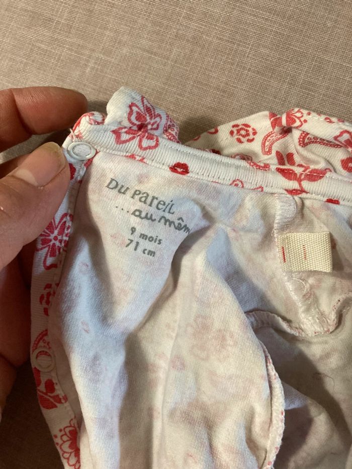 État : Très bon Craquant pyjama une pièce à col volanté de la marque Du Pareil Au Même, en taille 9 mois (71 cm). Motifs floraux et cachemires rouges agrémentés de petites touches pailletées pour un rendu girly tout en douceur. Matière douce et confortable, idéale pour les nuits comme les journées cocooning. Fermeture pressionnée dans le dos pour un enfilage facile. Détails : • Taille : 9 mois (71 cm) • Motif : fleurs et cachemires rouges pailletés • Col volanté • Matière confortable et extensible #pyjamabébé #dupareilaumême #9mois #bébéfille #colvolanté #pyjamafille #vêtementsbébé