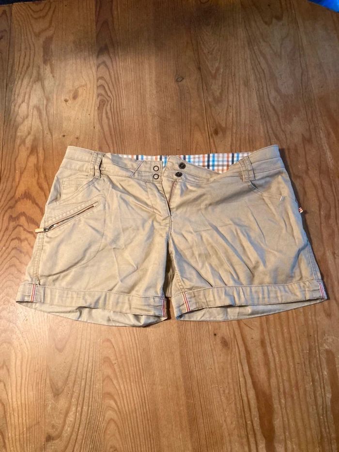 Taille 40 - 100% coton Coupe confortable, matière légère idéale pour les beaux jours. Détail intérieur à carreaux bleu, orange, blanc et bleu marine pour une touche originale. Fermeture par pressions Poche zippée pratique, bon maintien à la taille. 📏 Taille : L / 40 🌈 Couleur : Beige 📦 Matière : 100 % coton #shortfemme #shortfemme40 #shortbeige #shortquechua #quechua #shortété #shortcoton 📸 Image générée par intelligence artificielle pour visualiser le porté. Seule la première image de l'annonce est générée, les autres montrent le produit réel.