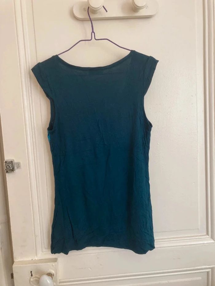 Débardeur bleu canard à sequins - Haut de pyjama ou top estival - Taille 38 - photo numéro 4