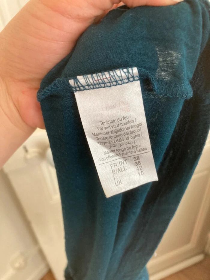 Débardeur fluide bleu canard, orné de deux larges bandes de sequins bleu turquoise à l’avant. Bretelles épaisses légèrement tombantes sur l’épaule, encolure ronde, coupe droite. Matière douce et fluide, très agréable à porter aussi bien en pyjama qu’en top léger. État : Très bon état Taille : 38 Composition : 95 % viscose, 5 % élasthanne #debardeur #topsequins #bleucanard #hautfemme #topfluide #hautpyjama #modesecondemain Image générée par intelligence artificielle pour visualiser le porté. Seule la première image de l'annonce est générée, les autres montrent le produit réel.