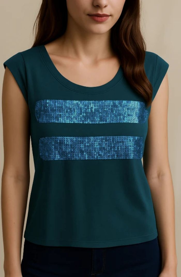 Débardeur bleu canard à sequins - Haut de pyjama ou top estival - Taille 38